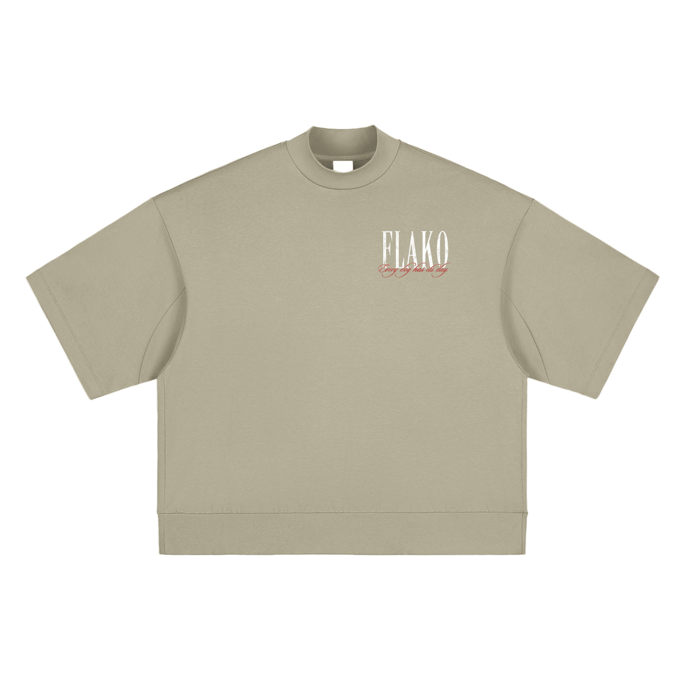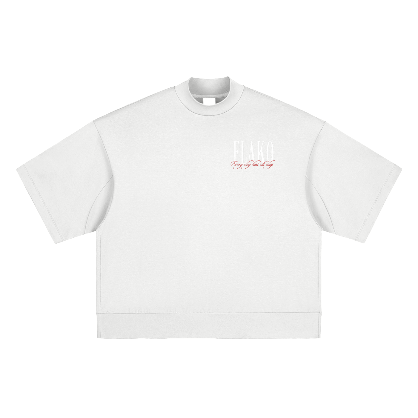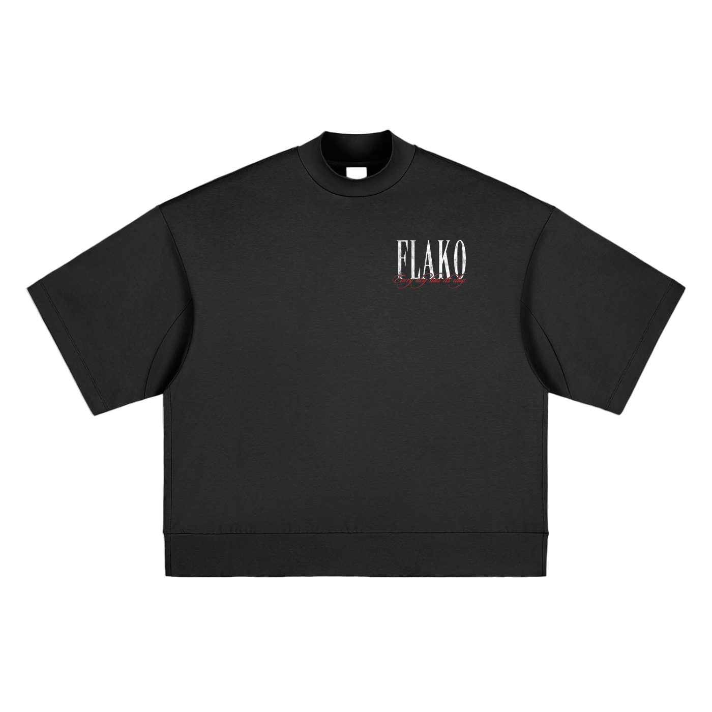 A bold statement piece, this tee blends premium construction with streetwear attitude. Made from 100% pure cotton and weighing 305 g/m² (9 oz/yd²), it delivers a soft yet substantial feel perfect for year-round wear. The loose, oversized silhouette, drop shoulders, and elevated mock-neck style create a modern street look that stands out in any fit.